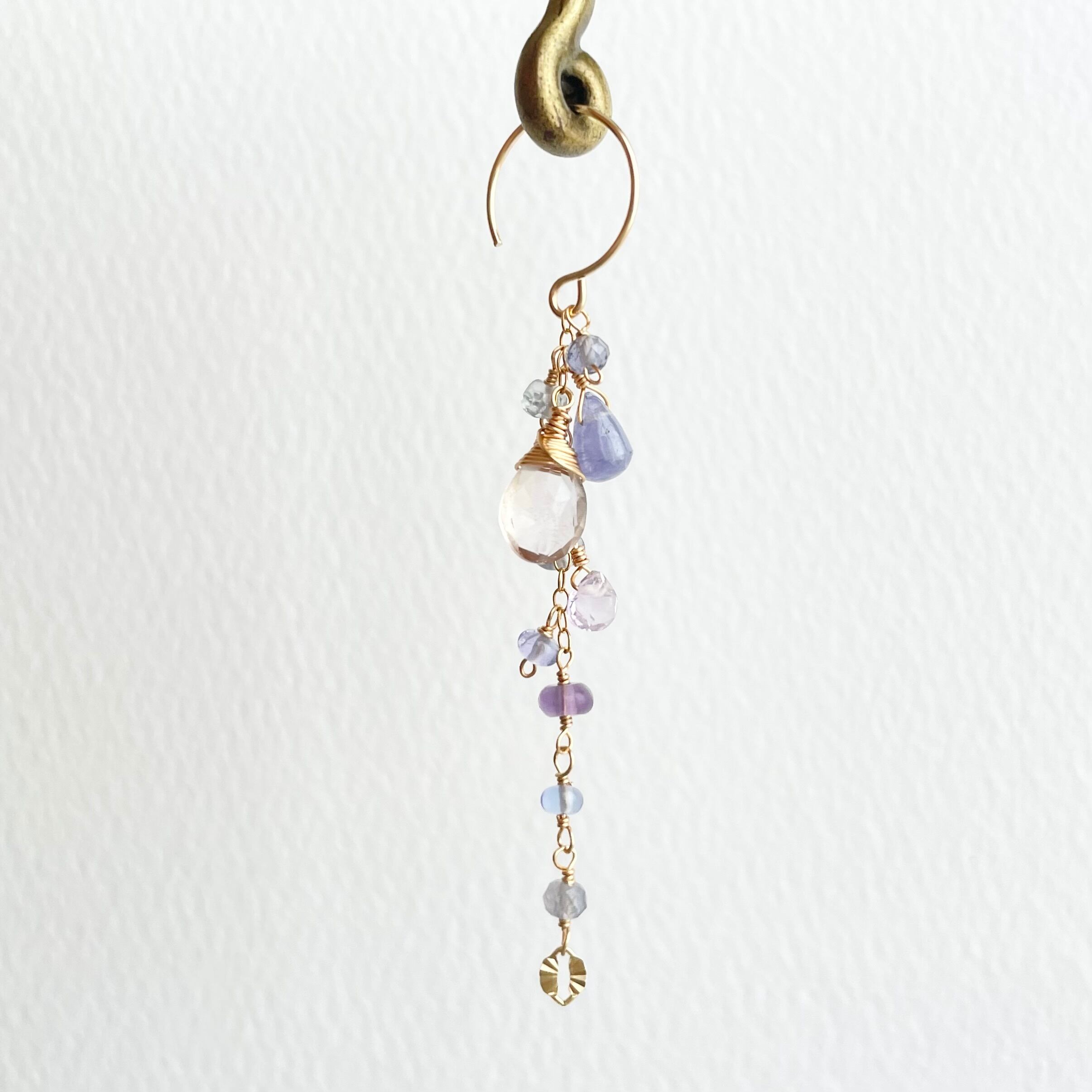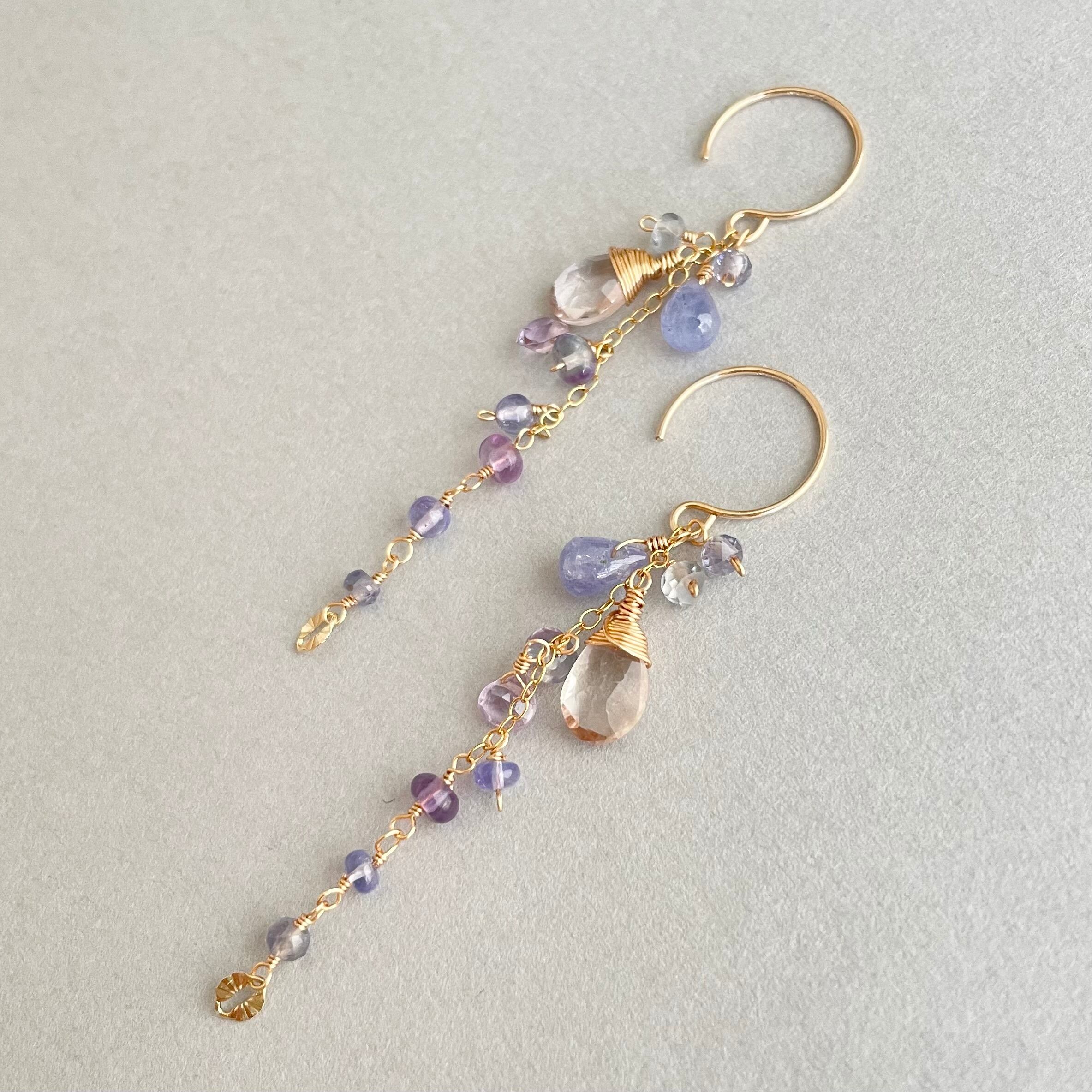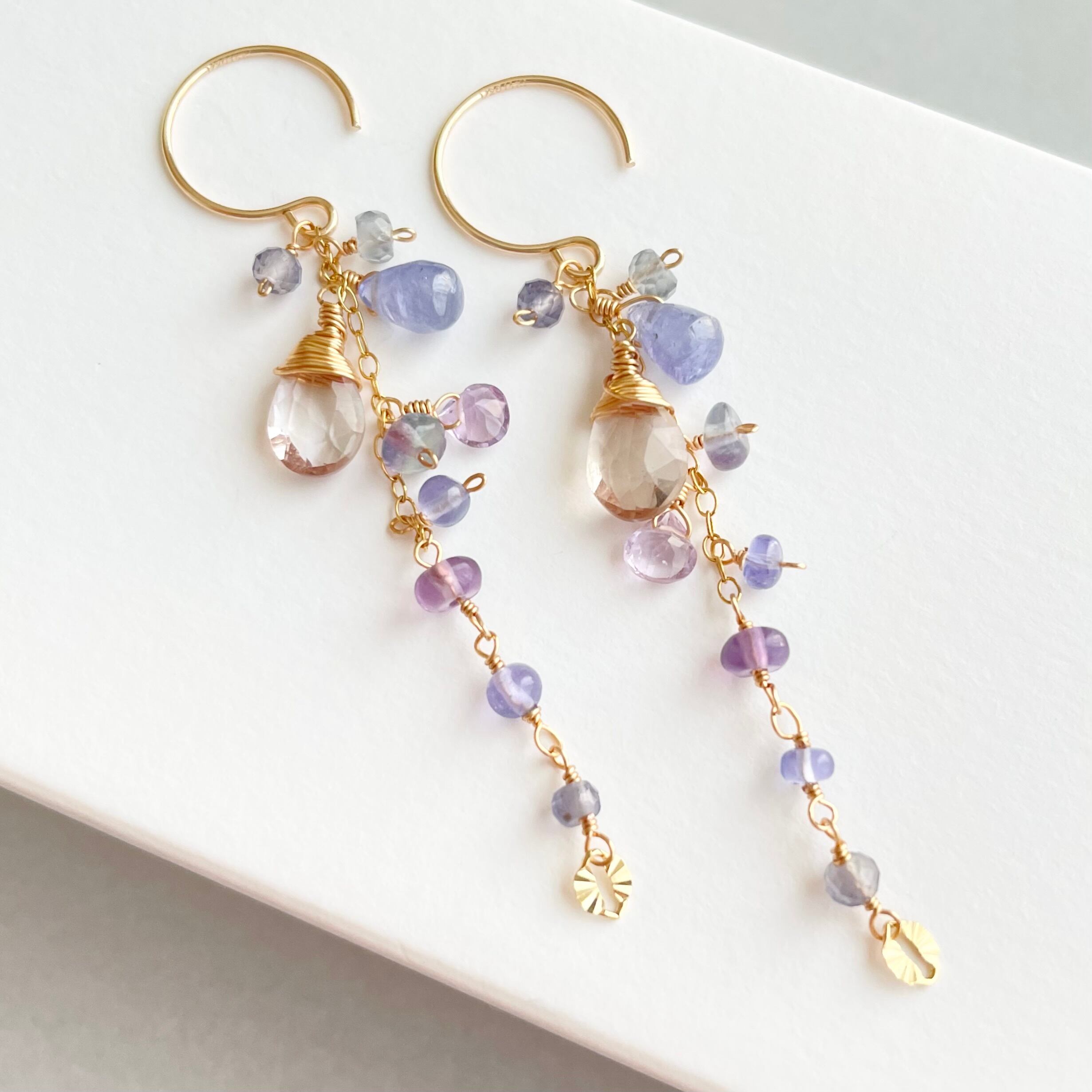【14kgf/天然石】星降るピアス|タンザナイト×アメジスト|耳元に瞬く星の雫