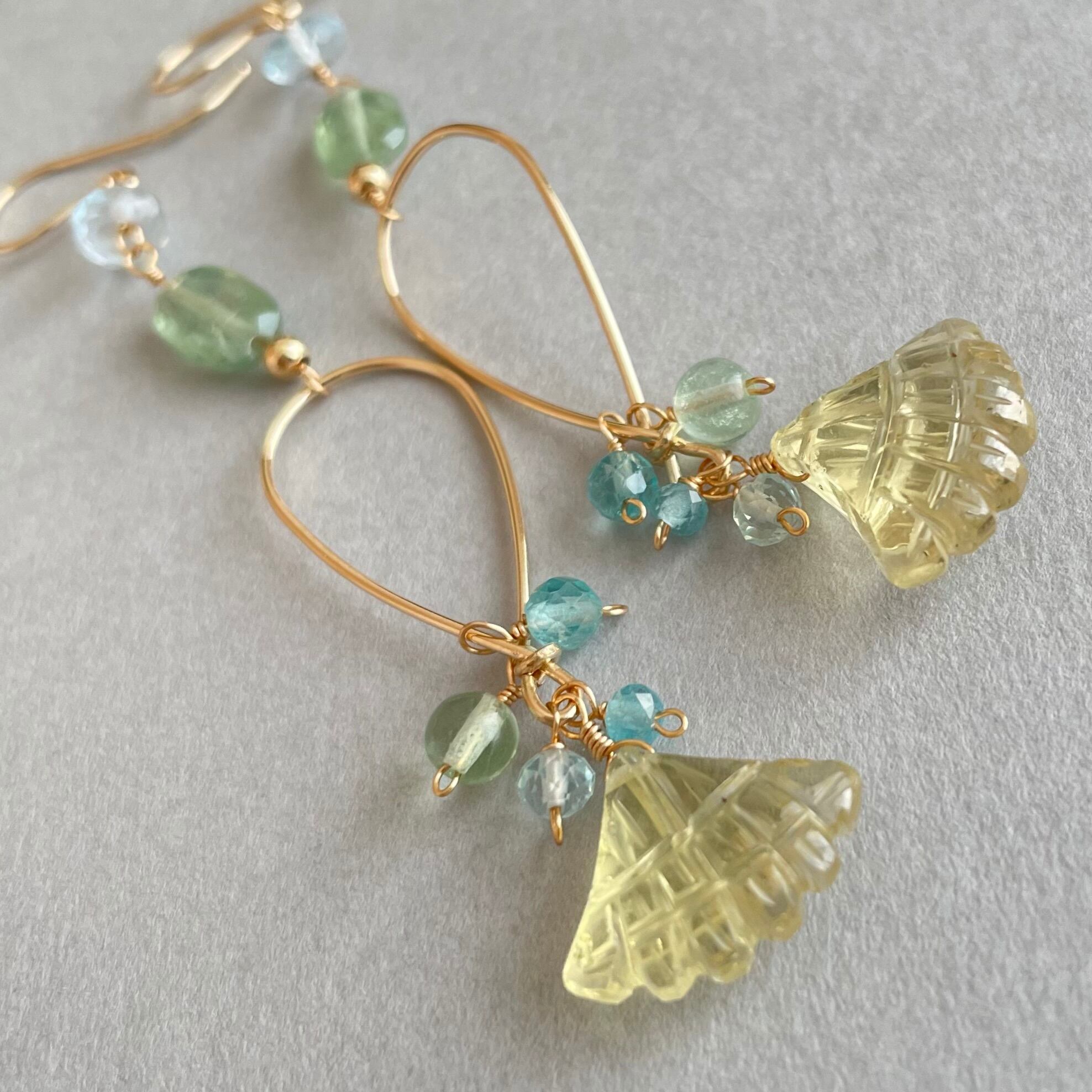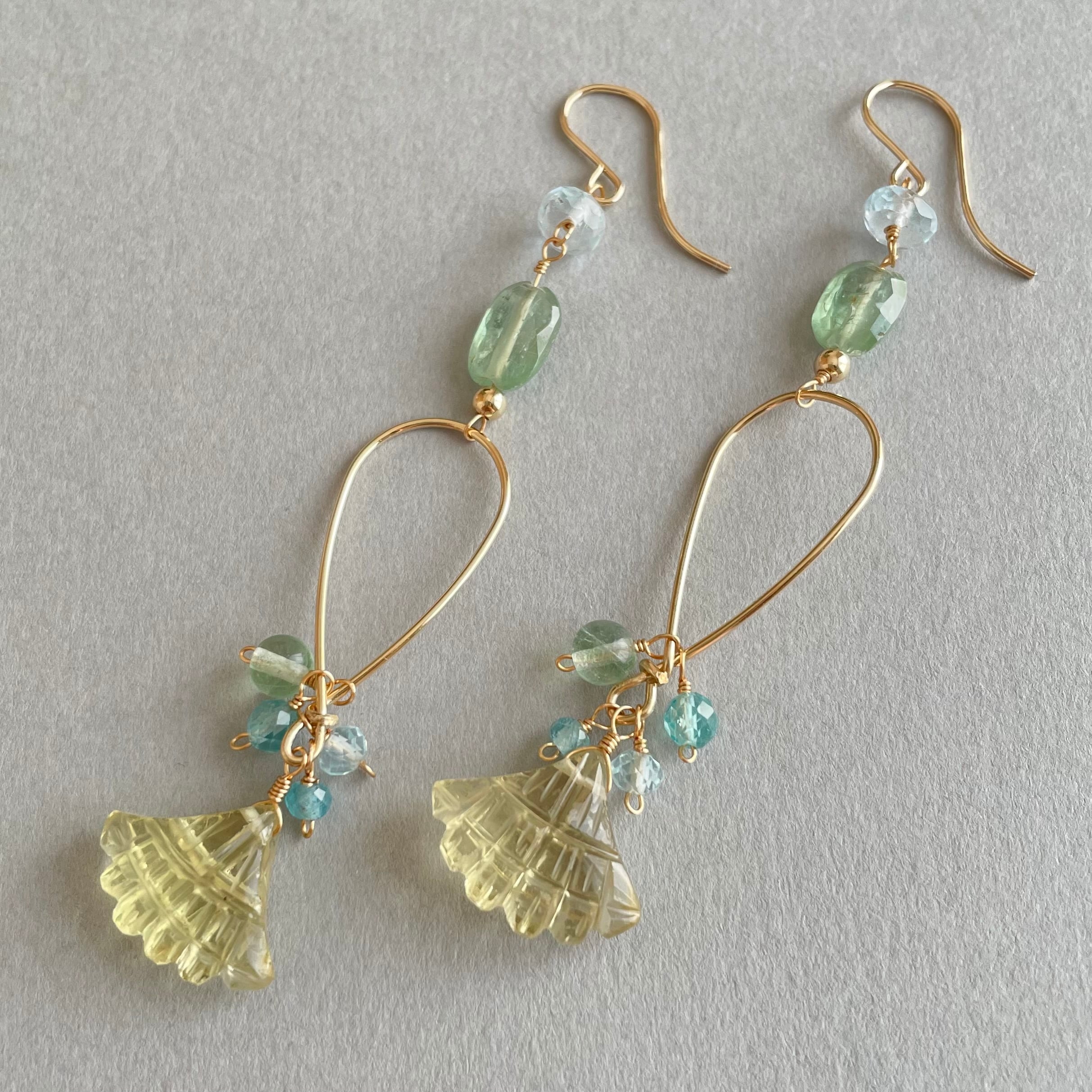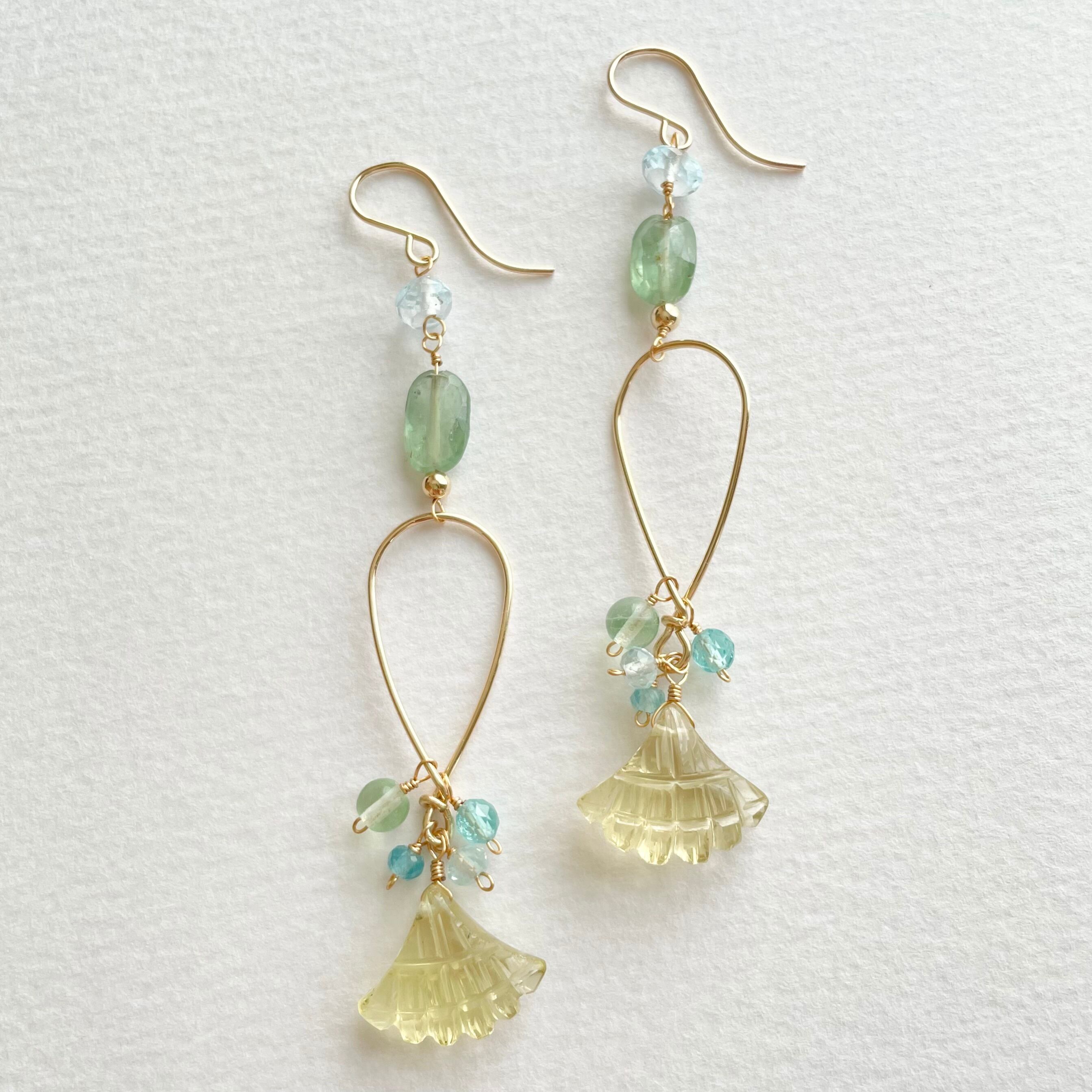【14kgf/天然石】マーメイドピアス|レモンクォーツ×ブルートパーズ|夏に揺れる大人の煌めき